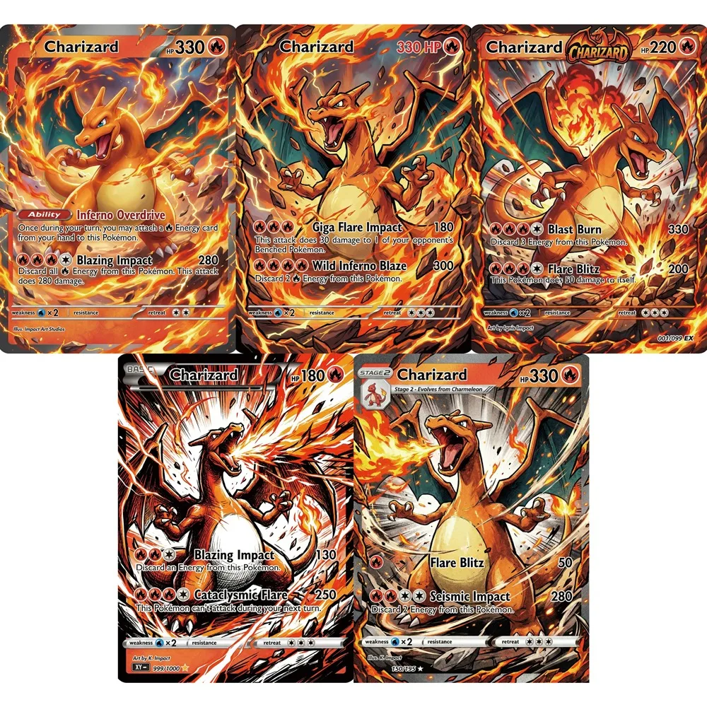 5 cartes Pokémon PTCG Charizard Impact Frame Style Display, ...