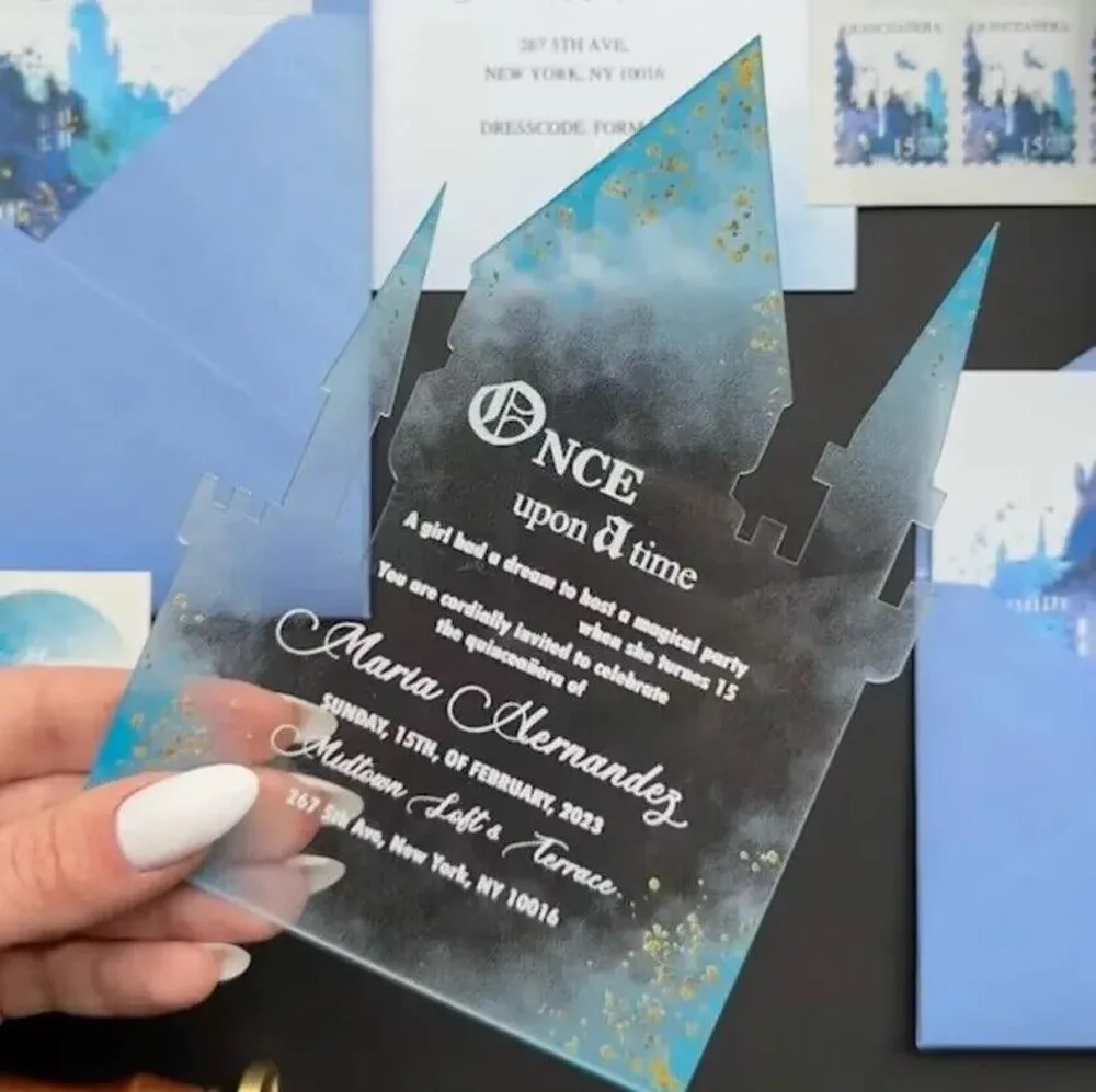Invitation de mariage en acrylique personnalisée, or miroir, argent, or Rose, Invitation en a...