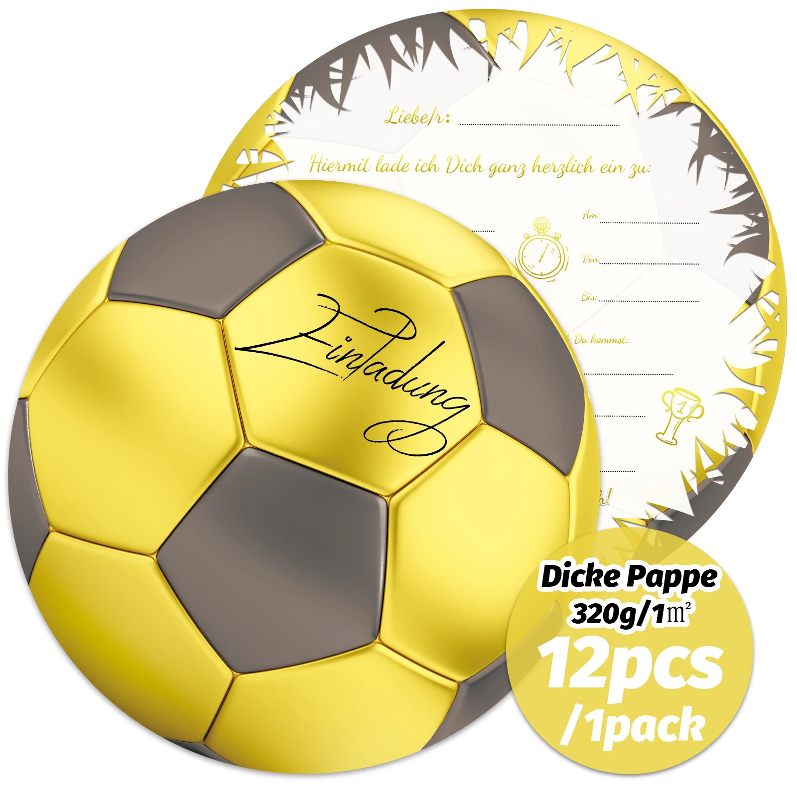 12 pièces carte d'invitation de Football doré fête d'anniversaire diamètr...