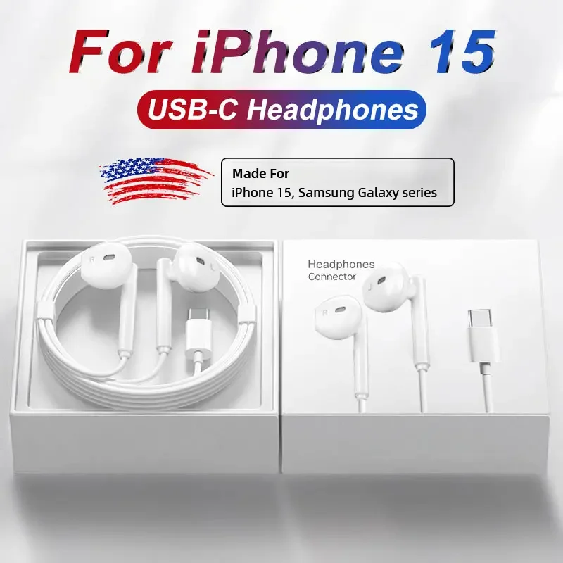 Nouveau 2025 USB Type C casque pour Apple iPhone 15 Pro Max 14 13 1...