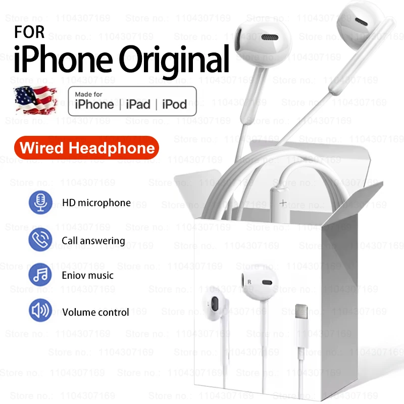 Écouteurs d'origine pour Apple iPhone 14 Pro Max casque Lightning 13 12 11 Mini X XS XR SE 6 ...