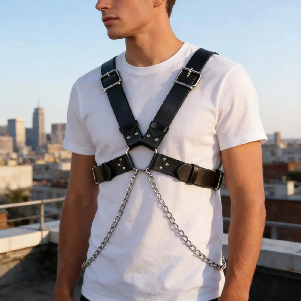 Harnais de poitrine en cuir pour hommes, 1 pièce, chaî...