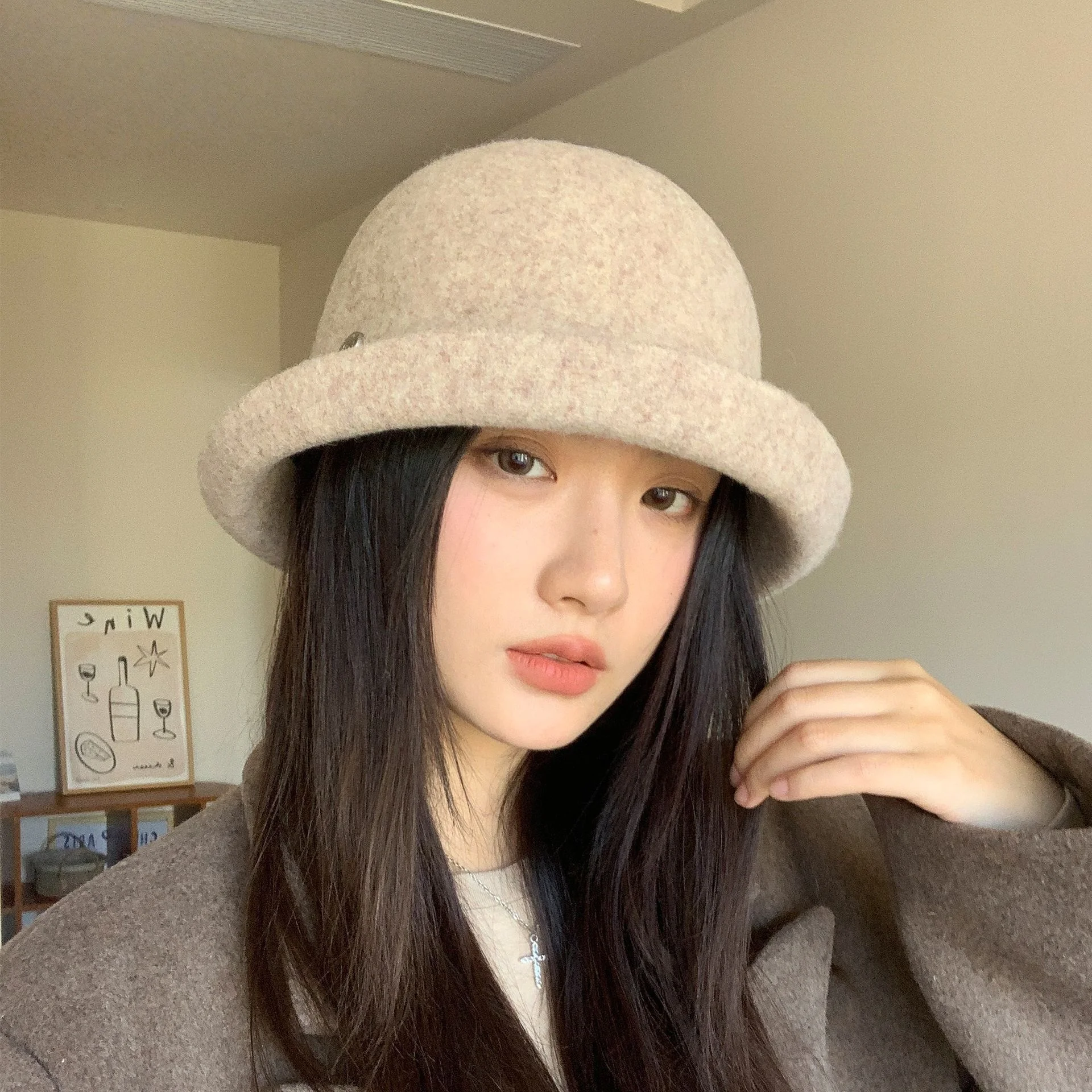 Nouveau chapeau en laine: chapeau melon, chapeau de pêcheur-chapeau seau chaud de Style fran&c...