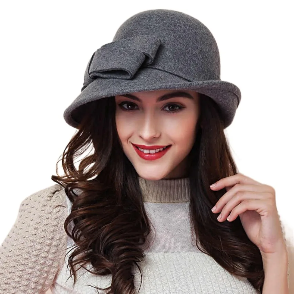 Chapeau melon en laine vintage pour femmes, chapeau de bassin, nœuds de mode, chapeau de poiss...