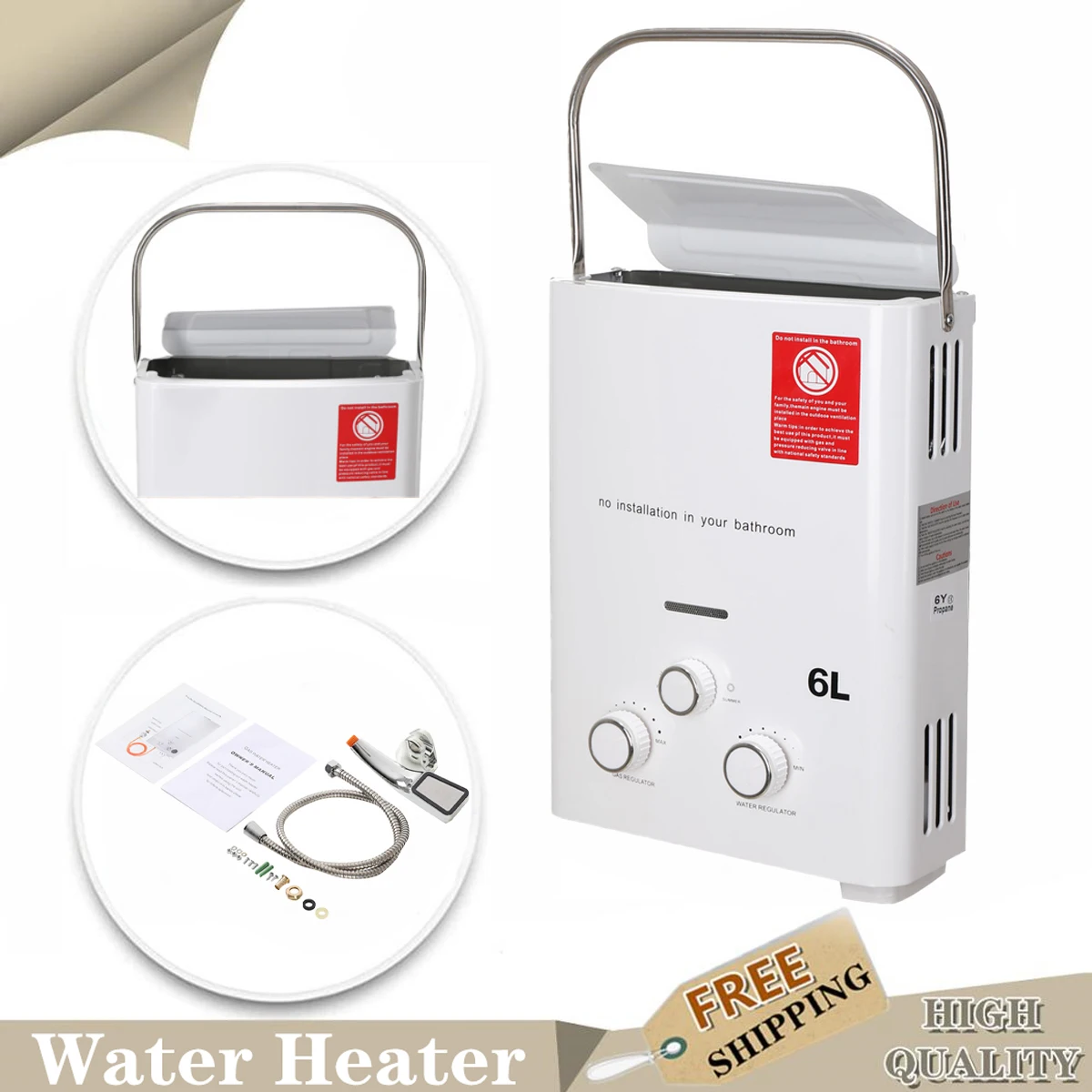 Chauffe-eau GPL sans réservoir au gaz propane, acier inoxydable, chauffe-eau instantané...