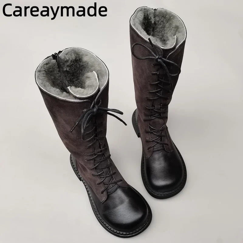 Careaymade-Bottes de cavalerie en cuir véritable pour femmes, cuir véritable, grande t...