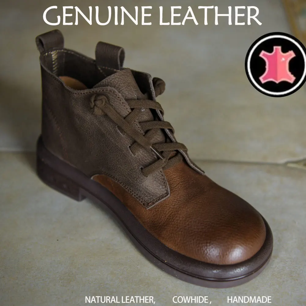 Bottes classiques rétro en cuir de vachette de qualité supérieure, couleur unie...