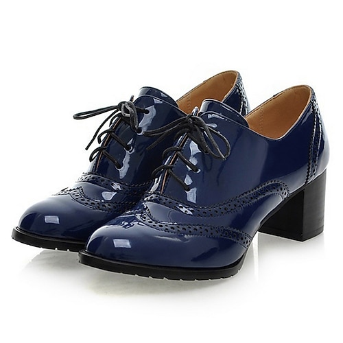 Chaussures richelieu en cuir verni bleu marine pour femme – C...
