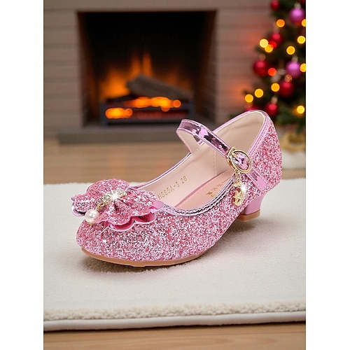 Chaussures Mary Jane roses à paillettes pour enfants avec n&...