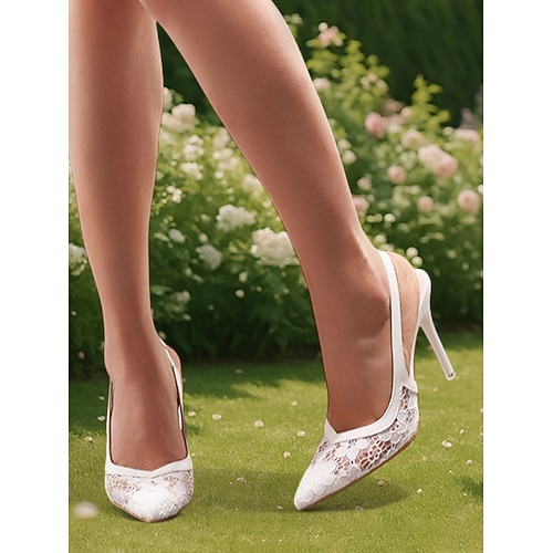 Escarpins à talons aiguilles en dentelle blanche pour femme ...