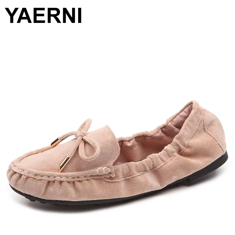Mocassins à nœud papillon en daim et cuir pour femmes, chaussures plates pliables &agra...