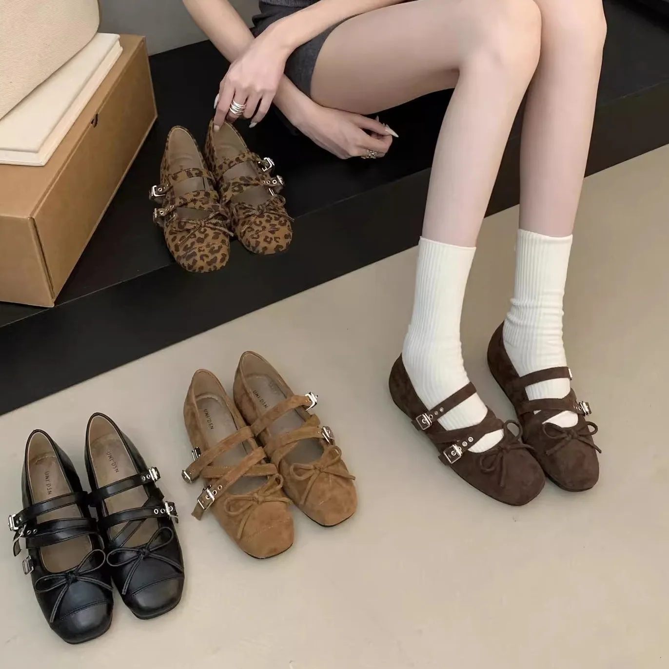 Mocassins à nœud papillon en daim et cuir pour femmes,...