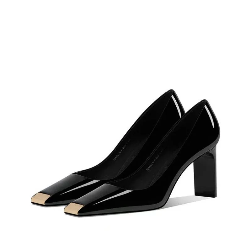 Escarpins de travail en cuir brillant pour femmes, confortables, talons hauts de 3.5cm, peu profonds...