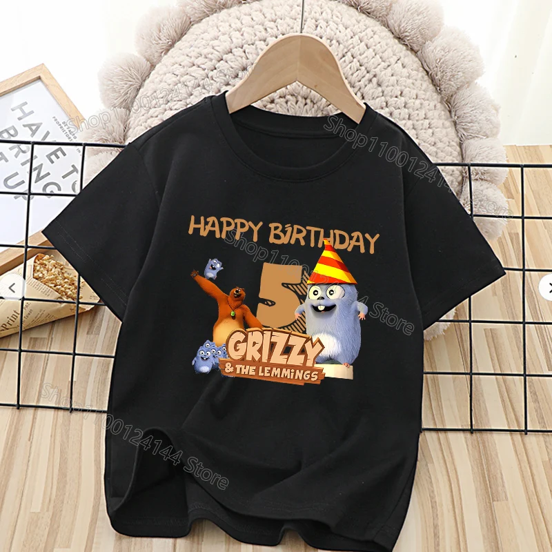 Kawaii Grizzly Lemmings t-shirt vêtements enfants joyeux anniversaire chiffres vêtements...