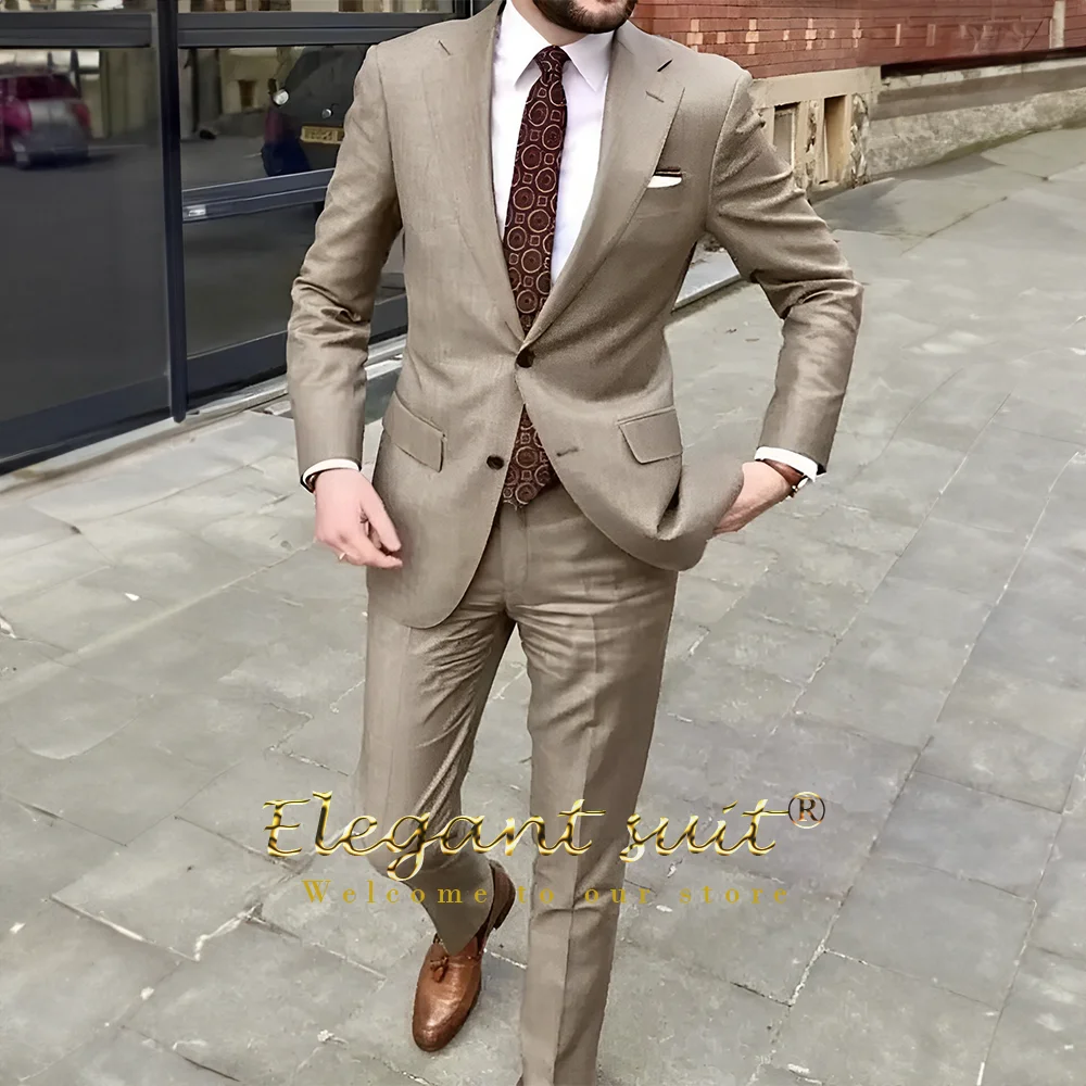 Costumes pour hommes rétro Beige clair Tweed coupe ajustée costume à simple bou...