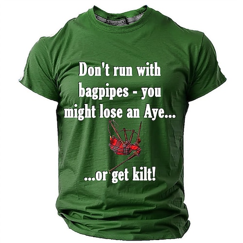 T-shirt graphique shamrock « Ne cours pas avec des cornemuses...