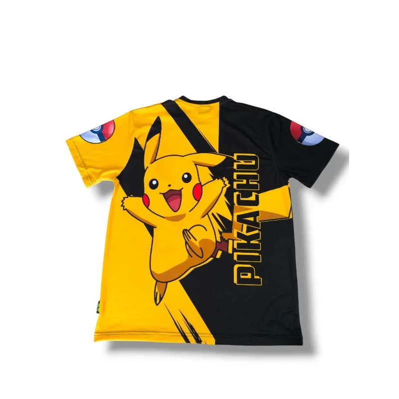 Nouveau maillot Pikachu pour homme, anime Pokémon, noir et jaune, motif Pikachu sautant, logo...