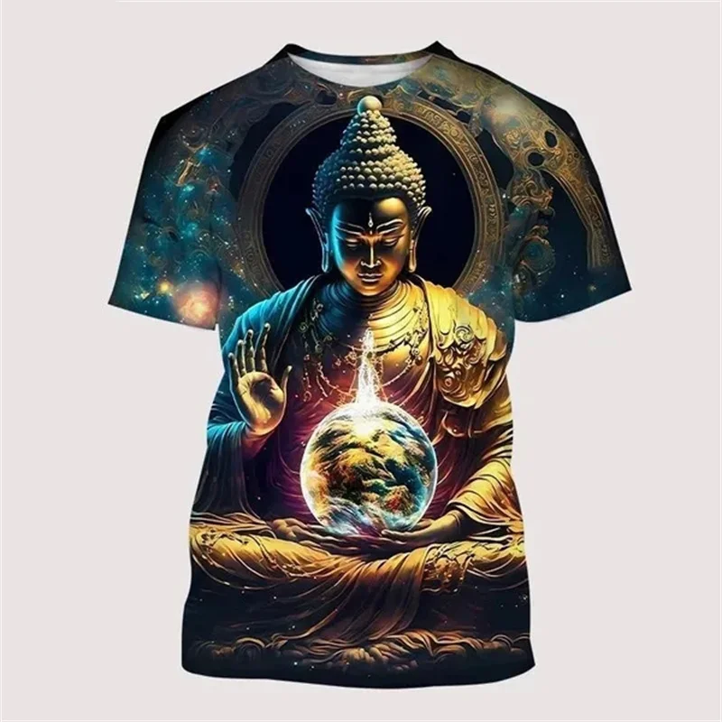 3D Printed Buddha Shakyamuni T Shirt Men's Buddhism Pattern Tees Summer Harajuku Round Neck Tops Ove...