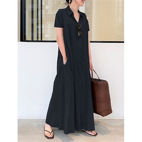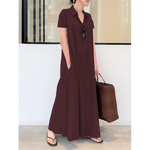 Femmes Robe maxi Faux coton lin Robe fourreau Robe Chemise Robe D&e...