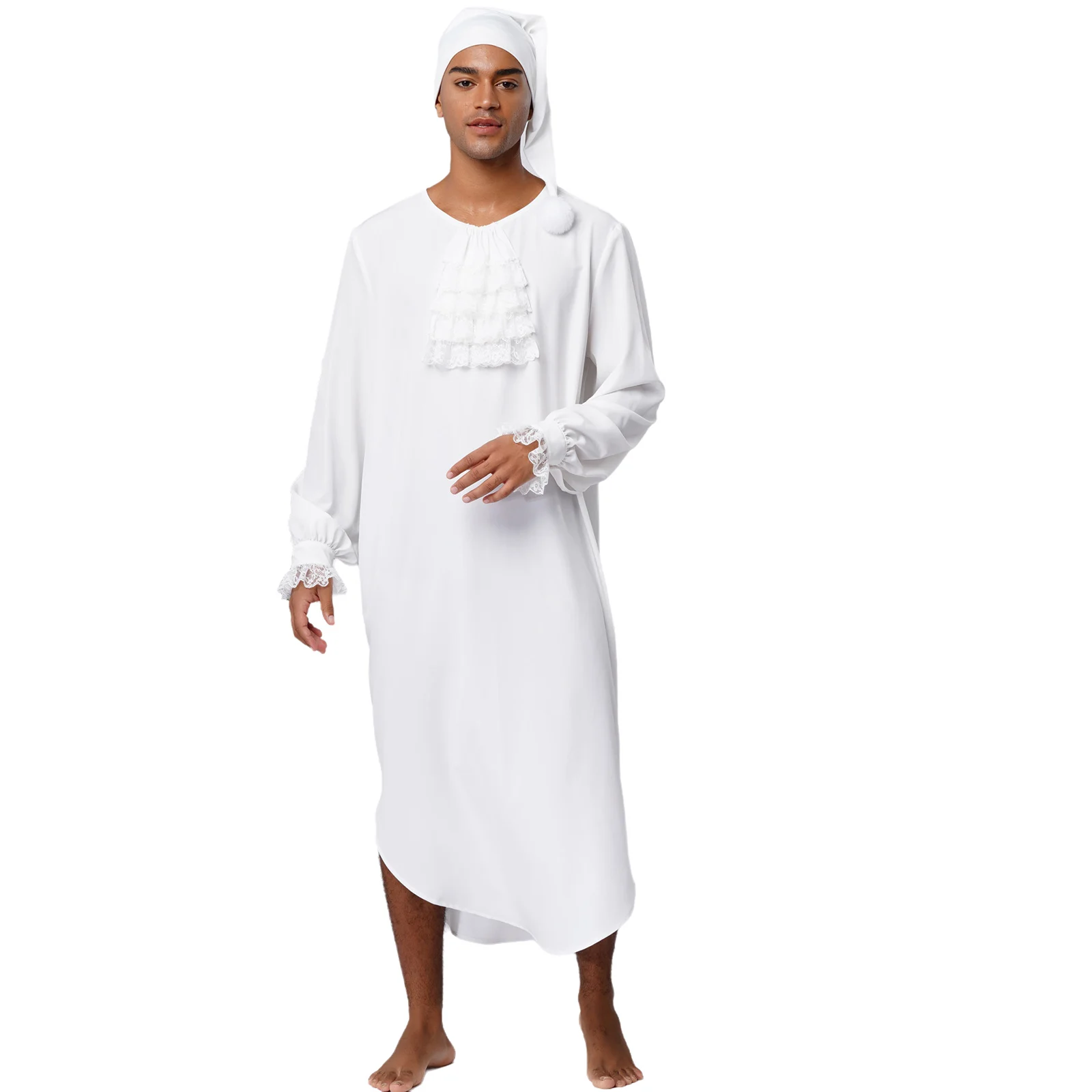 Chemise de nuit de Style victorien pour hommes, douce et ample, manches longues, garniture en dentel...