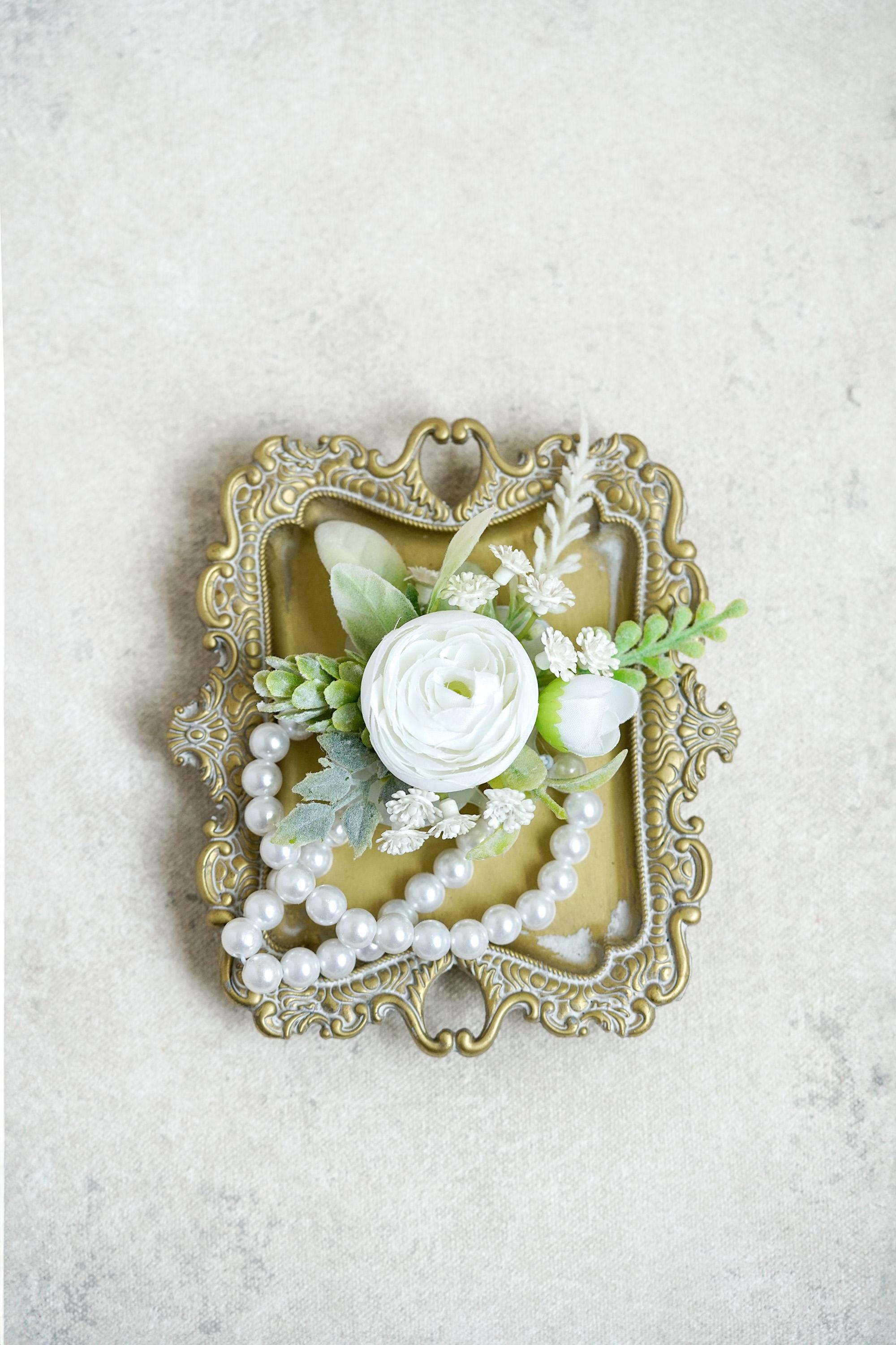Corsage personnalisé de bracelet de perles roses blanches, c...