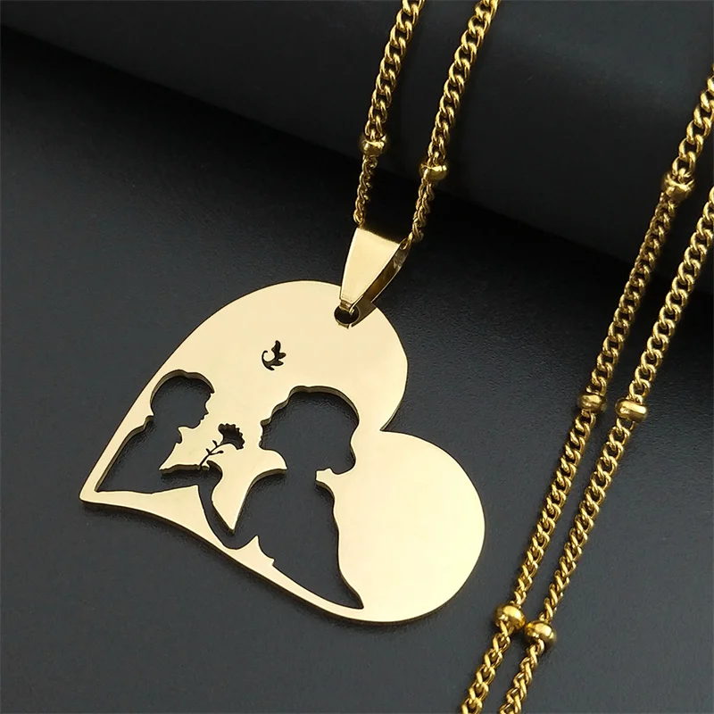 Authentique amour en forme de coeur 24k couleur or pendentif collier dame élégant or b...