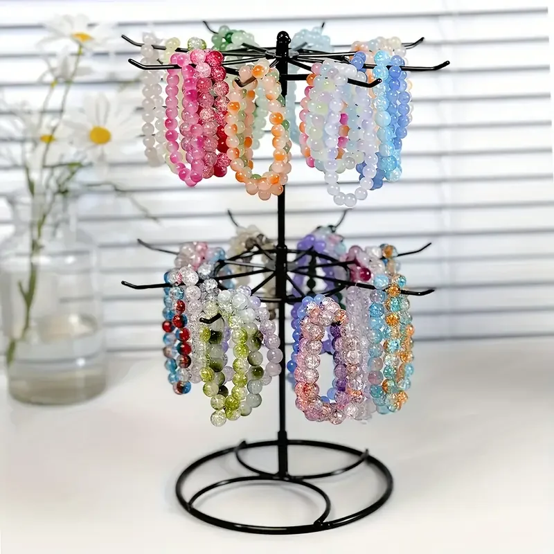 Présentoir à bijoux rotatif à 2 niveaux, porte...