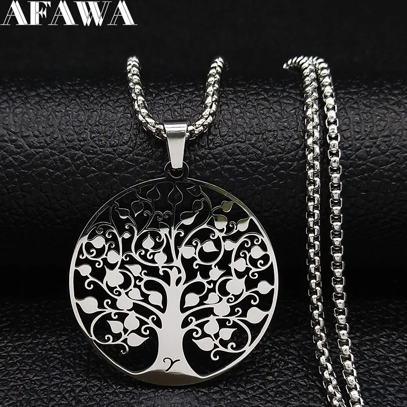 collier chaine homme bijoux colliers colier Collier en acier inoxydable arbre de vie pour femmes cou...