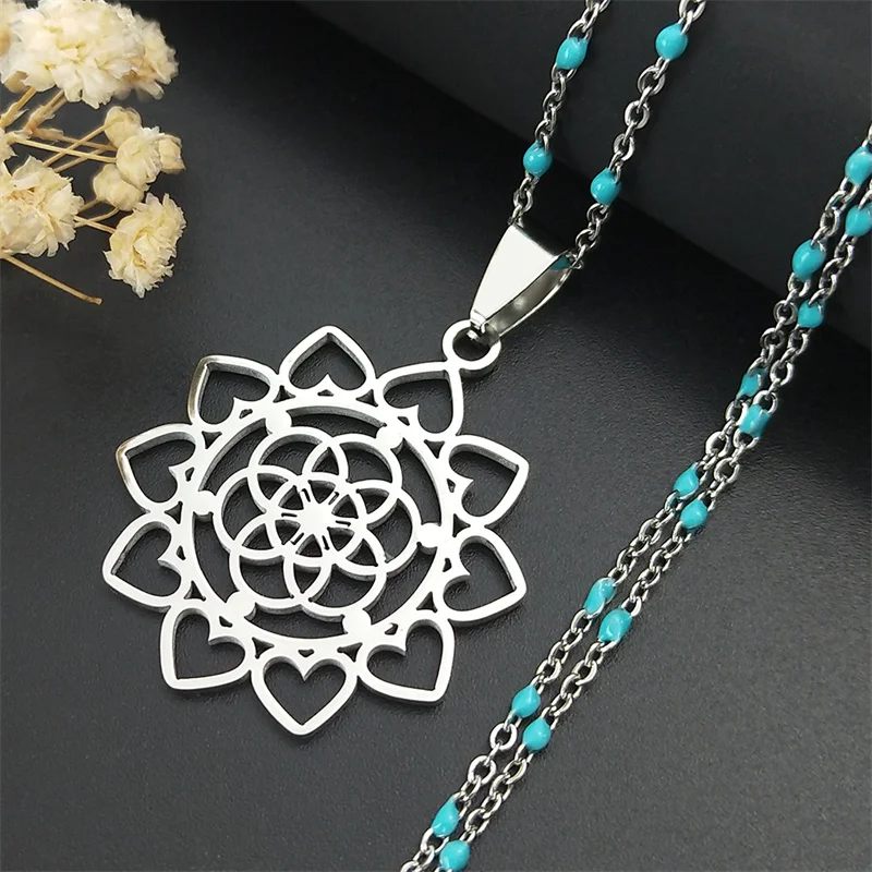 collier chaine homme bijoux colliers colier Collier chaîne fleur de vie en acier inoxydable po...