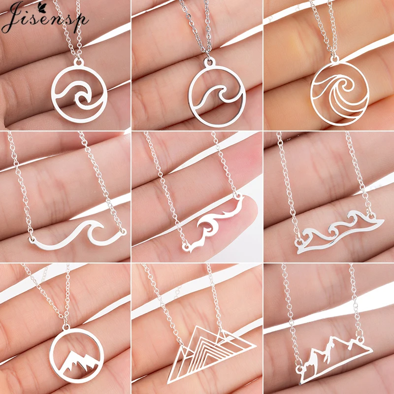 Jisensp bohème vague pendentif collier en acier inoxydable Bijoux collier pour femmes plage s...
