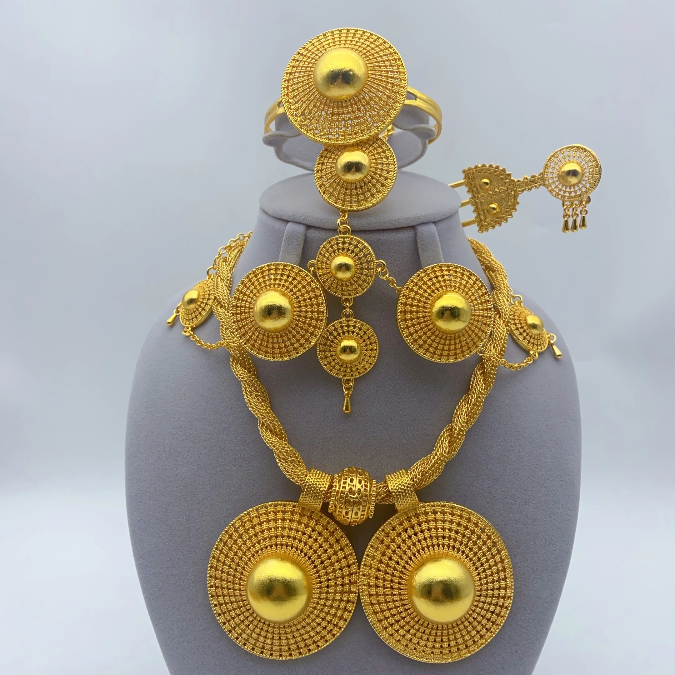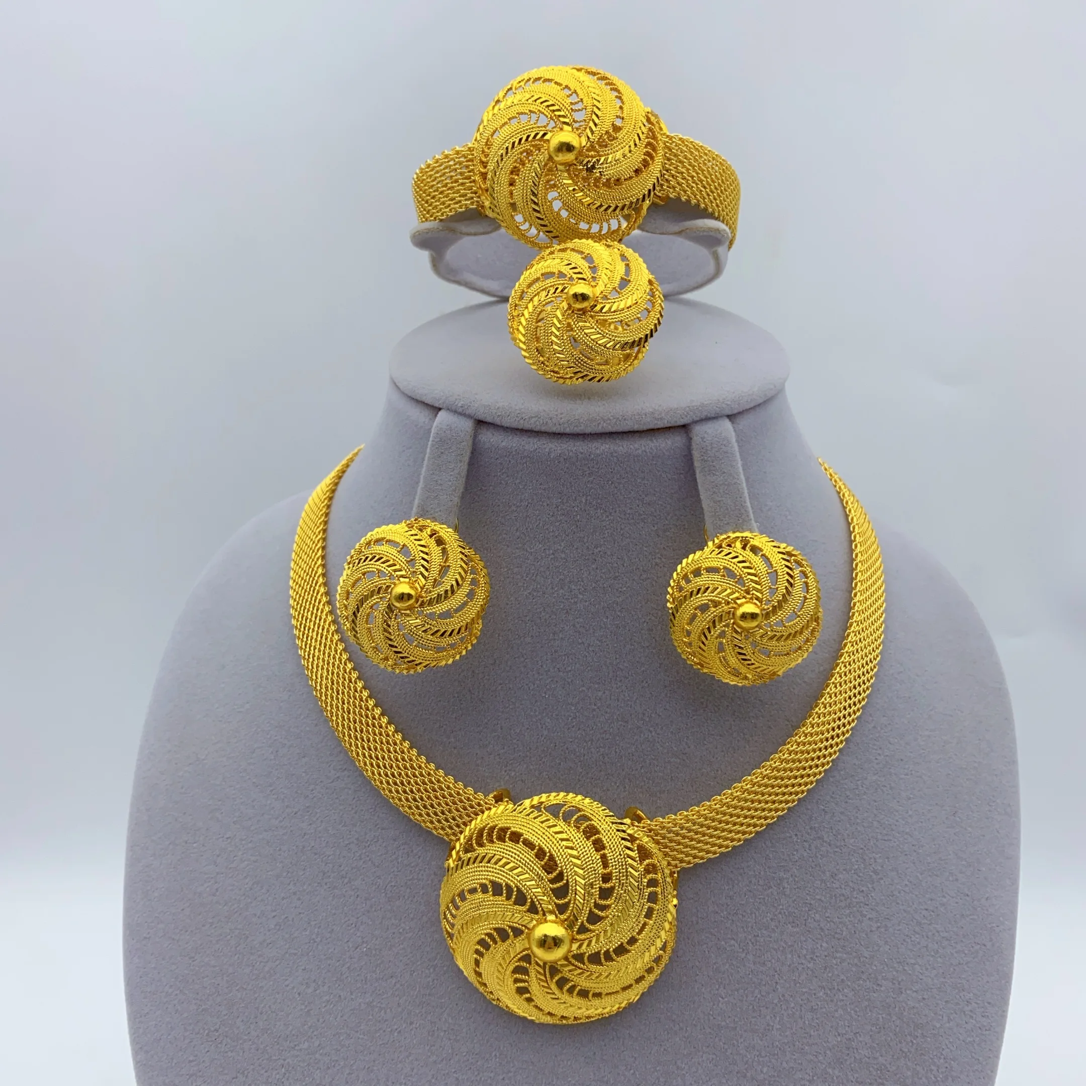 Arabe dubaï 24k plaqué or ensemble de bijoux pour les femmes fête africaine grand ...