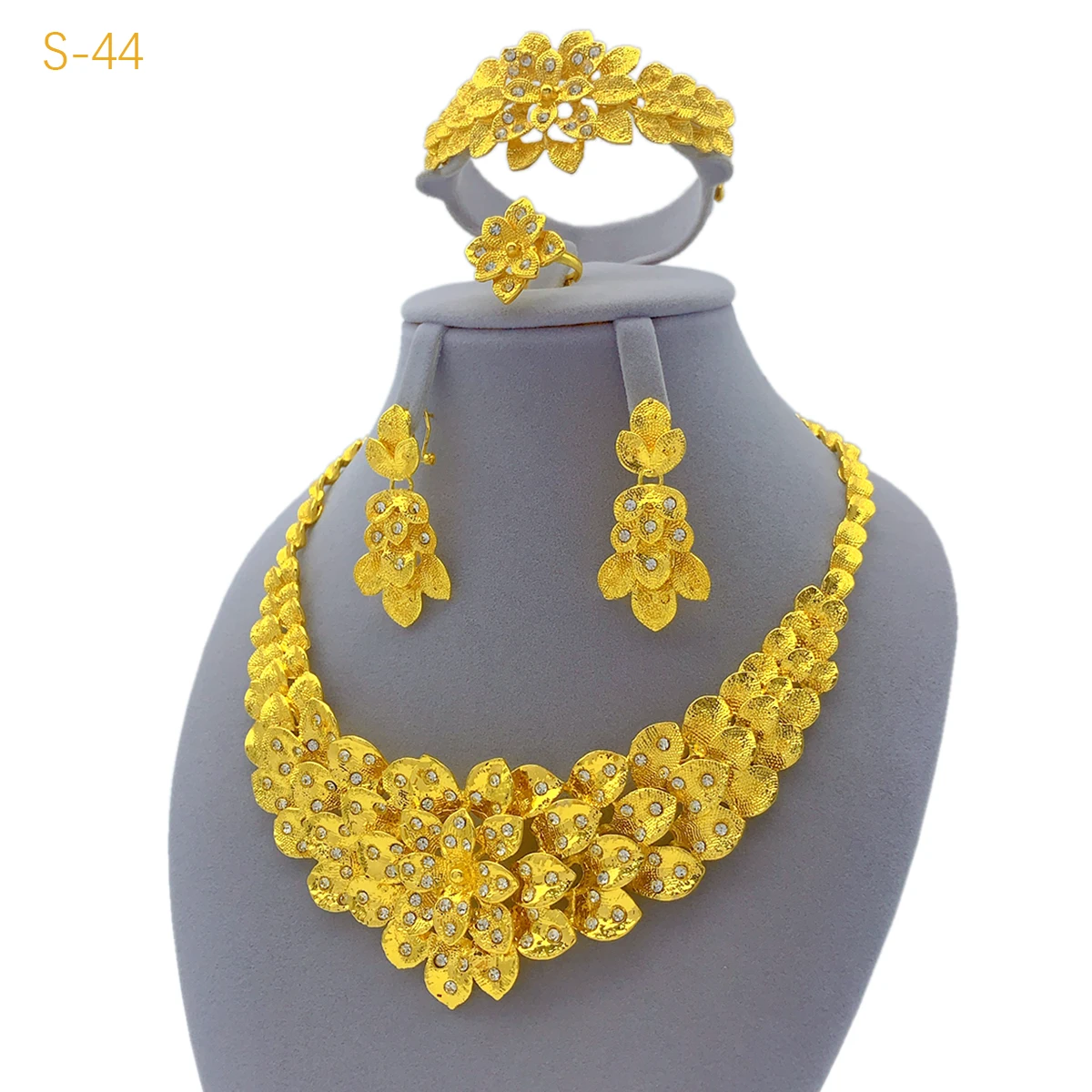 Ensemble de bijoux de luxe pour femmes, collier de fleurs africaines, plaqué or 24 carats, du...