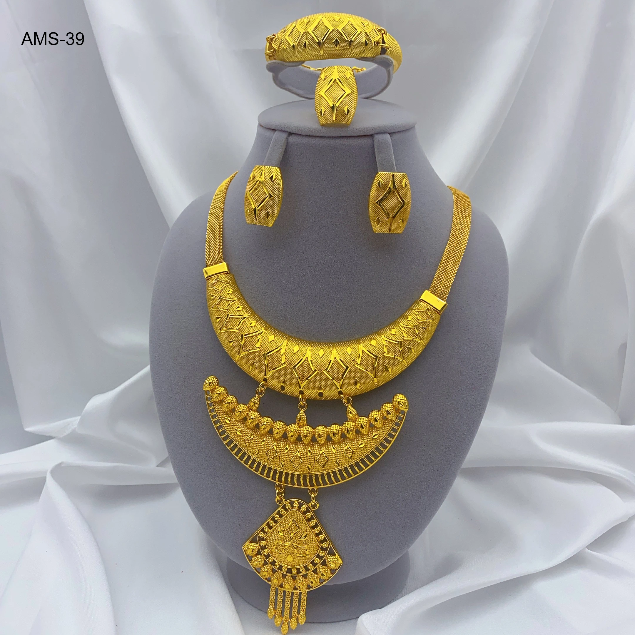 Vente en gros, nouveaux bijoux de couleur or de dubaï, collier...