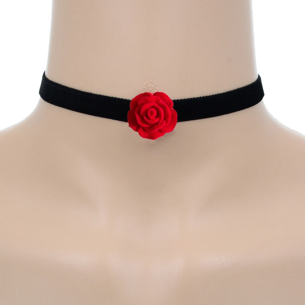 Collier rose à petites fleurs pour filles, tour de cou en dentelle sexy, bijoux de collier po...