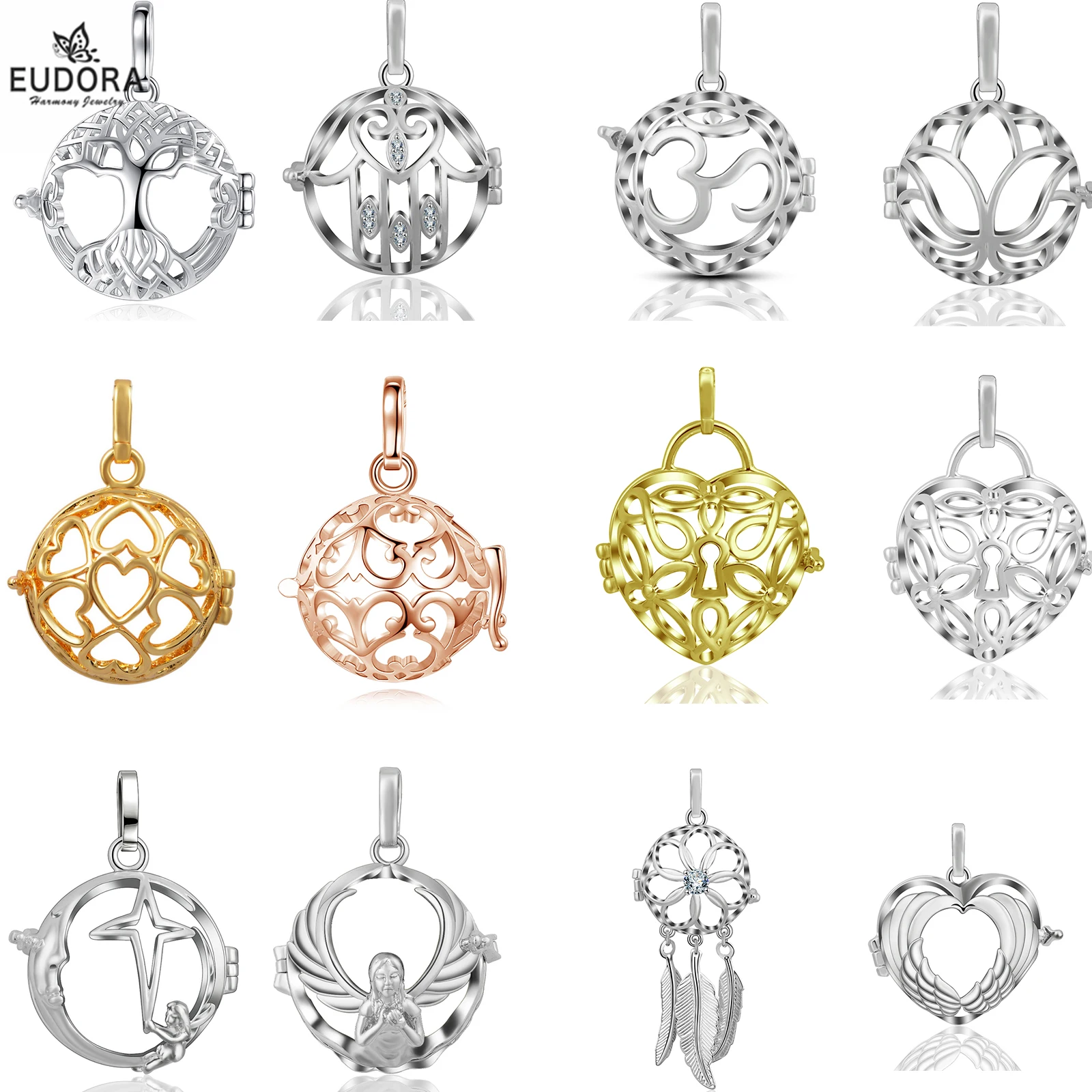 EUDORA – pendentif arbre de vie d'harmonie Bola, 20mm, Cage, ailes d'ange, OM, breloques, 11 s...