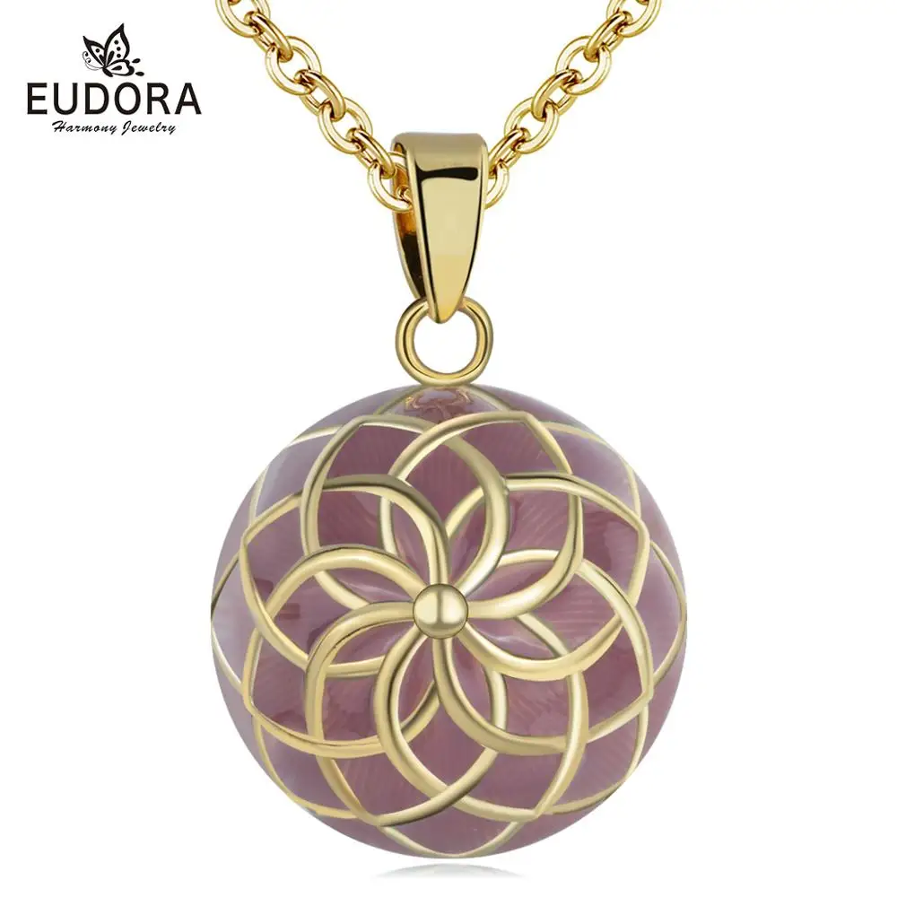 Eudora 20mm Unique harmonie gravité boule collier grossesse Bola boule pendentif avec fleur d...