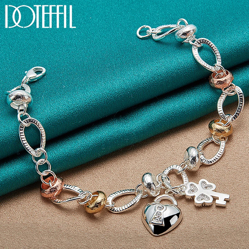 DOTEFFIL 925 en argent Sterling coeur serrure trèfle fleur AAA Zircon Bracelet chaîne p...
