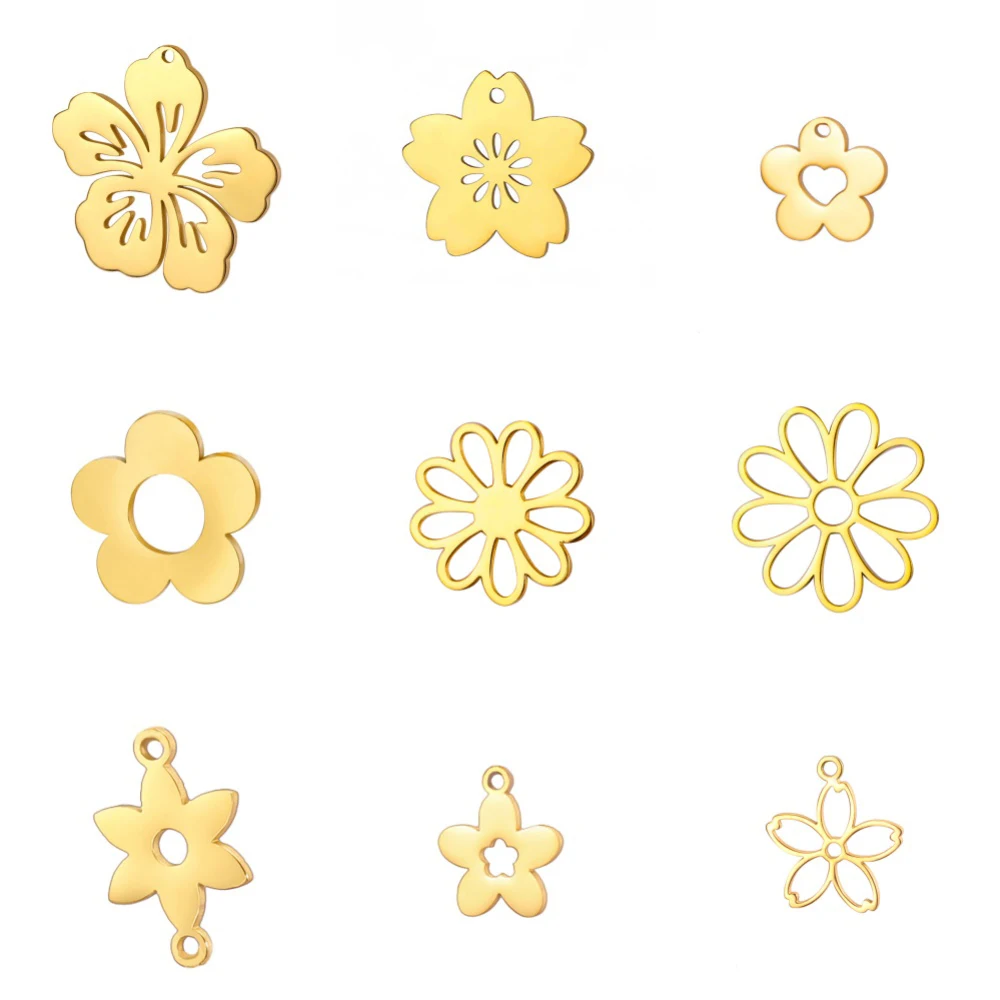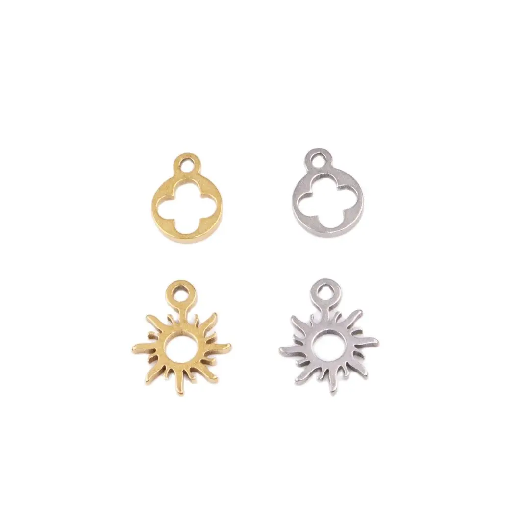 10 pièces en gros en acier inoxydable soleil fleur feuilles pendentif à breloques coll...