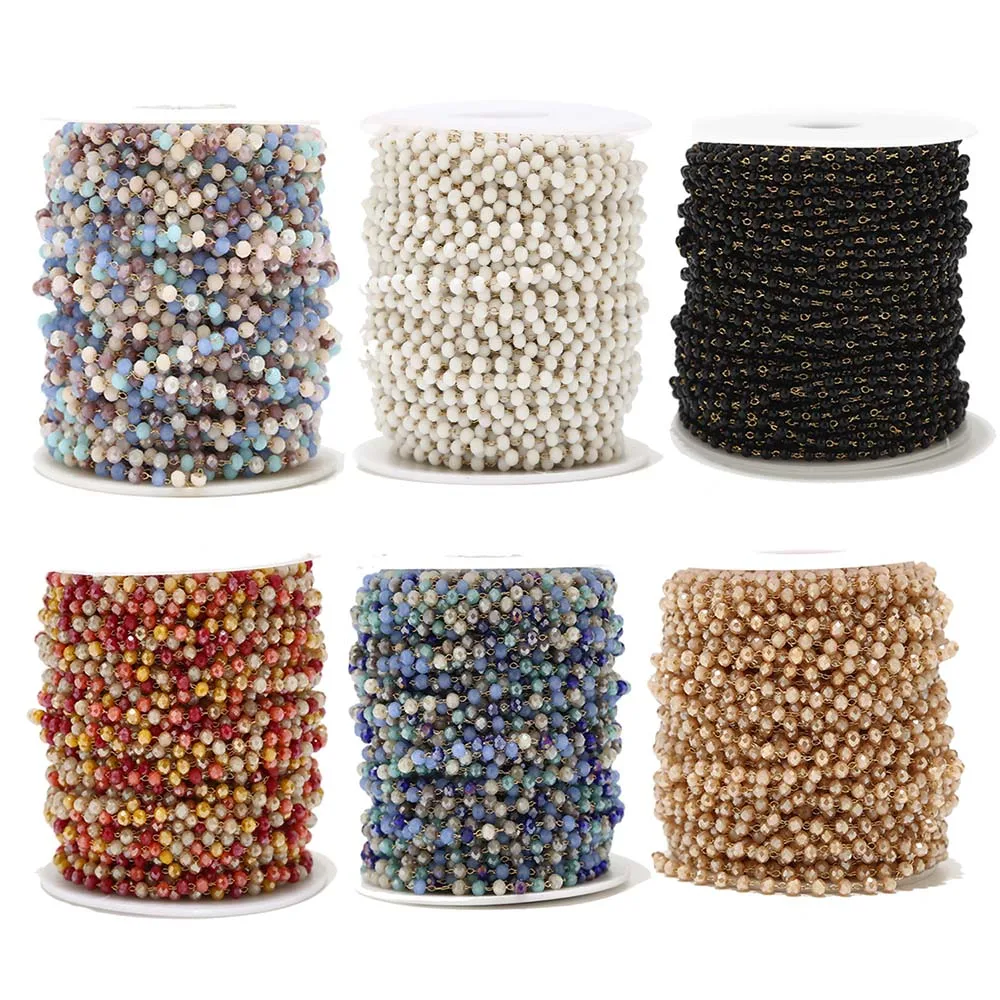 Chaîne perlée à facettes en verre d'acier inoxydable de 1 mètre 3mm perle...
