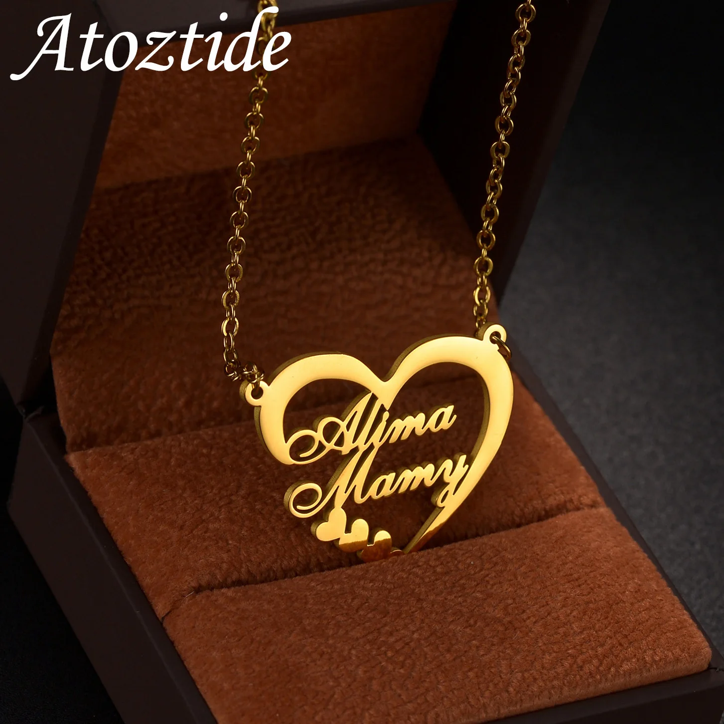 Atoztide-Collier Prénom Personnalisé pour Femme, Acier Inoxydable, Coeur, Brt, Lettre,...