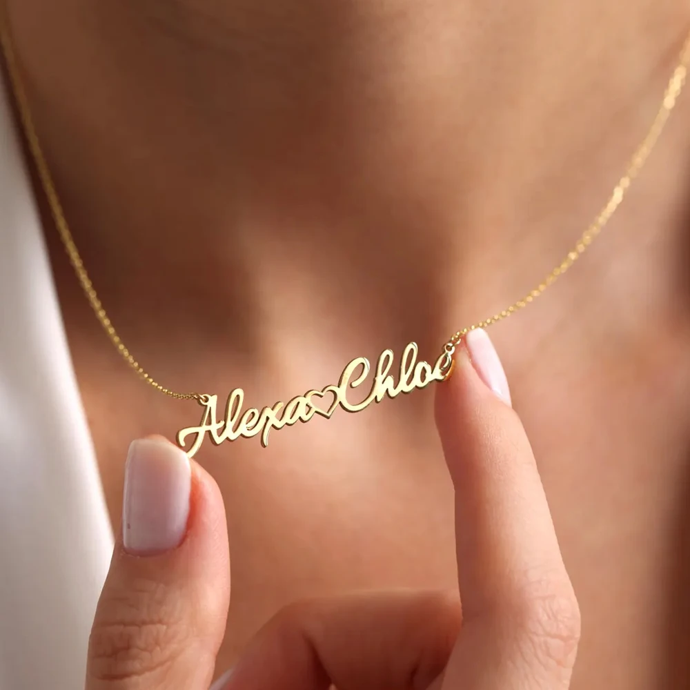 Lemegeton Collier Double Noms Personnalisé avec Coeur d'Amour pour Femme, Pendentif Pré...