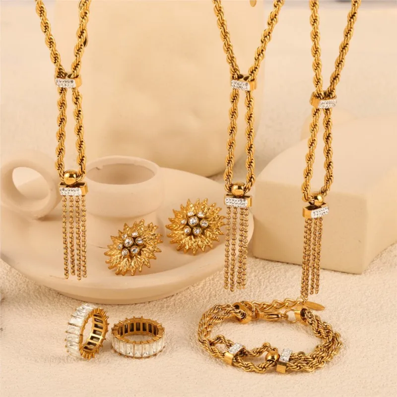Gland pendentif pâte frite torsion chaîne collier Bracelet pour femmes en acier inoxydab...