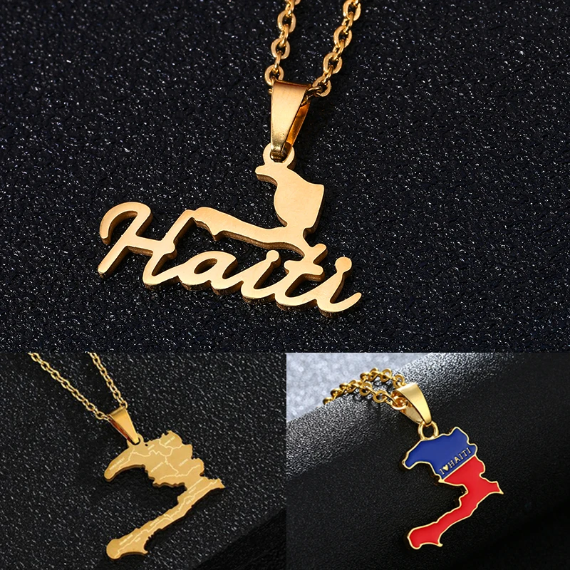 Mode Haïti Carte Falg Ville Pendentif Collier Couleur Or Acier Inoxydable Hommes Femmes Pays Ca...