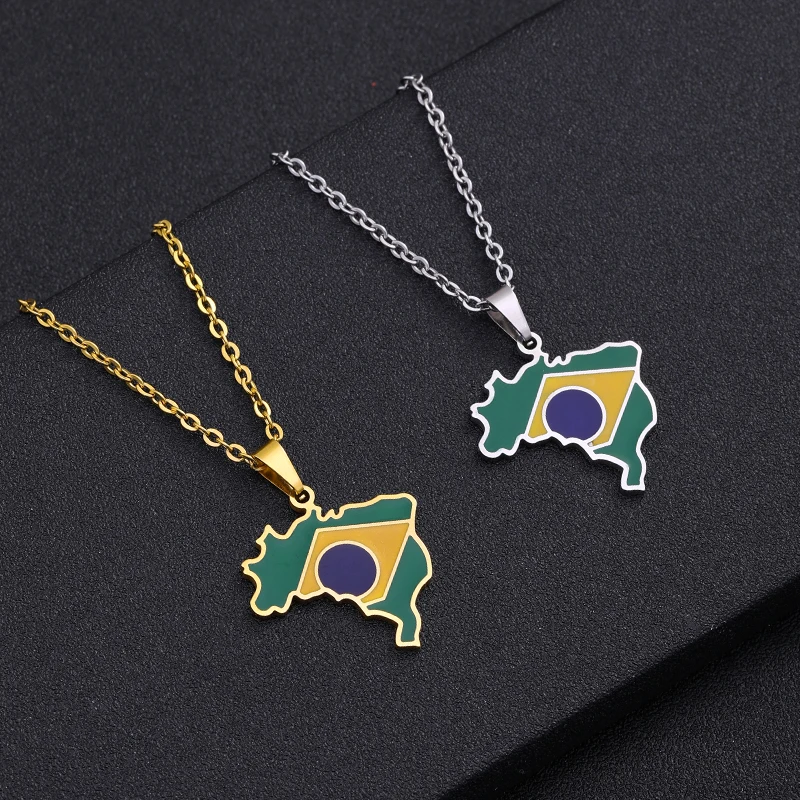 Émail acier inoxydable brésil carte et drapeau pendentif collier brésil cartes ...