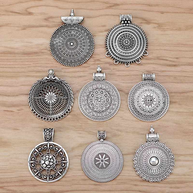 6 pièces bohême fleur cercles ronds Antique couleur argent breloques pendentifs pour co...