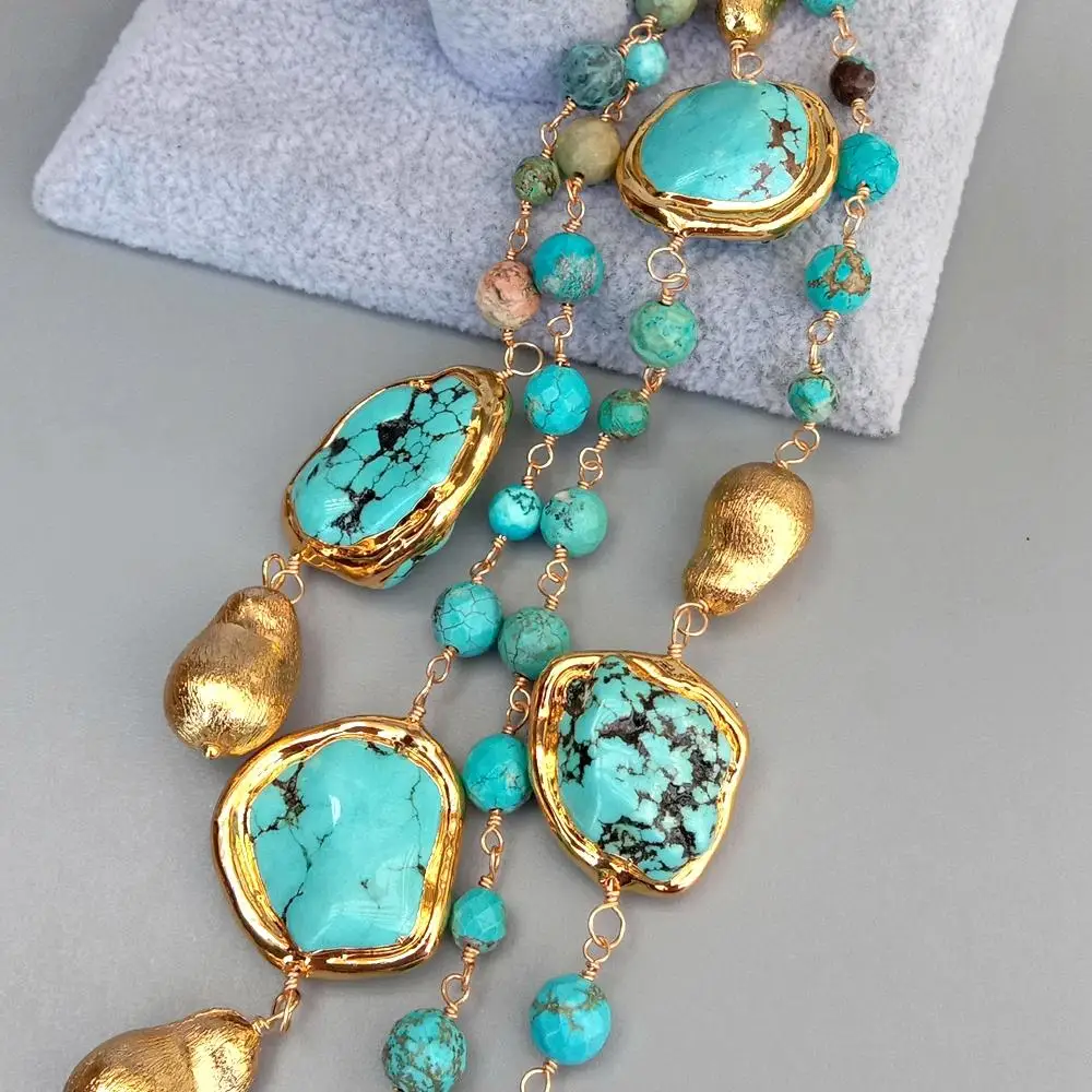 KKGEM – collier chaîne de pull Long 36 ''6mm-8mm rond 26x27mm, couleur Turquoise verte, ...