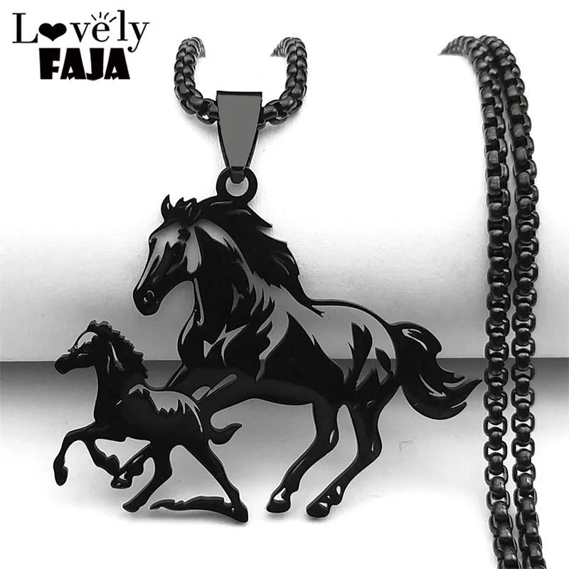 Collier pendentif grand cheval avec poney pour femmes et hommes, en acier inoxydable, Animal cheval ...