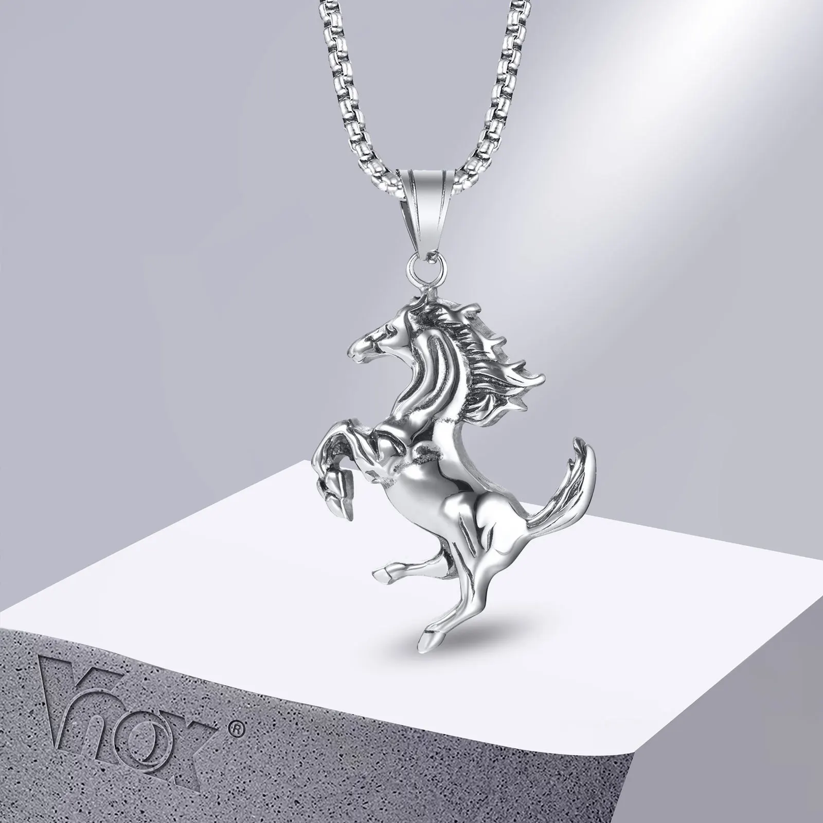 Vnox – collier cheval pour hommes, pendentif cheval de volet Rock Punk en acier inoxydable, bi...
