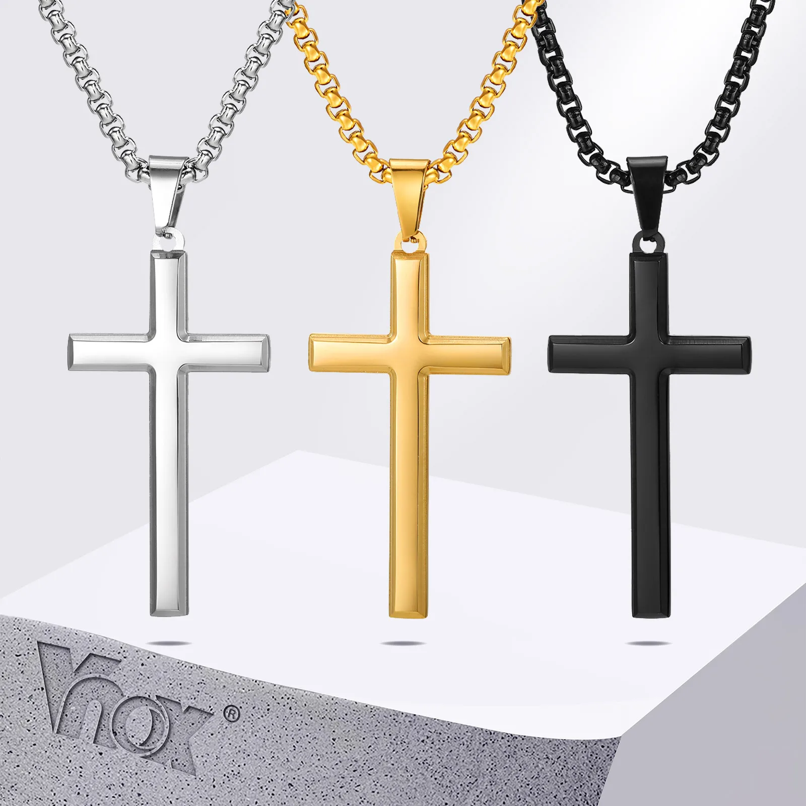Vnox – colliers simples à pendentif croix pour hommes, colliers classiques à col...