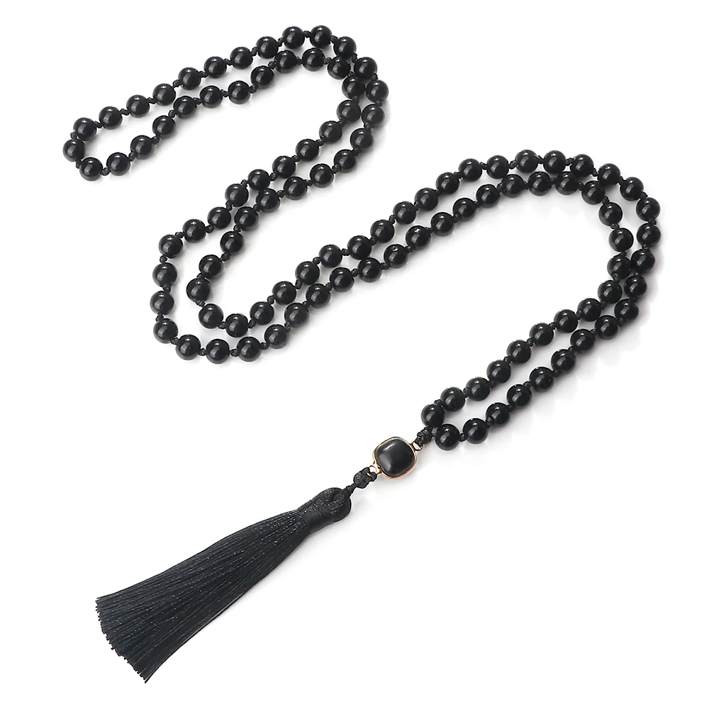 Collier de méditation en obsidienne noire, pierre naturelle,...